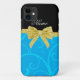 Custom name sky blue swirls gold glitter bow Case-Mate iPhone case