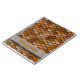 The custom cover design features rows of silver, bronze, and brown steampunk faux metallic scales. Fill in the template field with a name, initials or click customize to select a font style, size, and color you prefer.