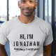 Make your team approachable and professional with this customizable employee name T-shirt. Designed for businesses, retail shops, restaurants, trade shows, and organizations with customer-facing staff, this shirt clearly introduces your employees and projects a warm, helpful attitude. The bold “Hi, I’m [Name]” text paired with “How may I help you?” makes it easy for customers and visitors to feel welcomed and supported. Ideal for uniforms, event staff, hospitality, or volunteer teams, this shirt helps your brand deliver a customer-friendly experience every time. Personalize with your employee’s name for a polished and professional look. Shown here in white with black text, many colors and styles available for both men, women and youth.
