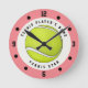 Custom Name Tennis Player Ball Pink Green Girls Round Clock