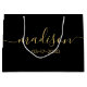Custom Name Text Girly Feminine Gold Script Black Large Gift Bag