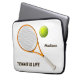 The sleeve is made of nice feeling material and seems very durable. I'm not sure how easy it'll be to clean, but the construction seems sound and the fabric is quick thick. I also like the double zipper. The printing is lovely and appears durable. The white on black contrast is nice, and the design very elegant.