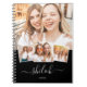 Unique custom gift with 4 favorite photos in a modern photo collage notebook with your name in a trendy hand written script and year below on a black backdrop. Sweet little personal gift for teens, kids, or besties!