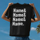 Make it uniquely yours with this clean and modern customizable name list t-shirt. Featuring a bold, minimalist typography design with repeated names separated by ampersands, this shirt is perfect for showcasing family members, kids, friends, couples, or even favorite words. The high-contrast white text on a classic black background gives it a timeless, stylish look that works for everyday wear, gifts, or special occasions. Personalize each line with your chosen names to create a meaningful and eye-catching statement piece.