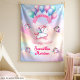 Wrap your little one in magic with this personalized pastel unicorn baby girl blanket, beautifully designed with soft shades of pink, purple, and blue. Featuring a sweet unicorn, rainbow, and fluffy clouds, this cozy blanket makes the perfect baby shower gift or keepsake. Add a custom name to create a truly unique present for a newborn, toddler, or special little girl.