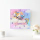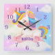 Custom Name Unicorn Clouds Sparkle Square Wall Clock