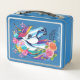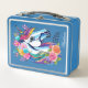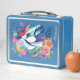 Custom name unicorn lunchbox with floral metal design for personalized magical meals.
