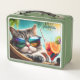 This is a standard metal lunchbox that appears to work just fine. We designed this box ourselves with an uploaded photo and custom text on the front and back. It looks absolutely beautiful except the front of the lunchbox is not centered like it shows in the photo. The print borders don't align with the inset flat part of the box where the preview photo online showed it perfectly centered in there. The back looks nice and centered though.