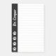 Personalized lined post it notes for a veterinarian. Classy minimalist design in black and white with paw print decoration and discrete gray lines. Customize it by replacing the sample name Dr. Cooper with your own name or any other custom name you want to print on the notes. Great custom post it notes for a veterinary doctor to use in his practice.