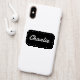 Your name or text in a retro script font. Default colors are white text on black background but this can be changed in the design tool.