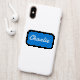Your name or text in a retro script font. Default colors are white text on a blue background but this can be changed in the design tool.