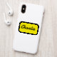 Your name or text in a retro script font. Default colors are black text on a yellow background but this can be changed in the design tool.