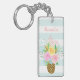 Custom Name Wish Pineapple Roses Pink Turquoise Keychain