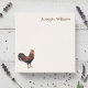 Elegant personalized sticky notes for farmers and chicken lovers. The notes feature a custom name printed in the top right corner that is easy to replace with your name or short message. The notes are decorated with a fun vintage style illustration of a rooster. Makes an affordable personalized gift as well a great addition to one's custom stationary stack.