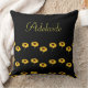 Custom name yellow sunflowers on black throw pillow