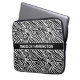 The sleeve is made of nice feeling material and seems very durable. I'm not sure how easy it'll be to clean, but the construction seems sound and the fabric is quick thick. I also like the double zipper. The printing is lovely and appears durable. The white on black contrast is nice, and the design very elegant.