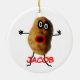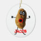 Lightweight, smooth, pure white ornament with nice sheen. Perfect size to be seen from across the room ... and to attract closer inspection! Price was great for ordering enough for the whole family! Clear, bold black design just as requested. Matches the order exactly. Just so nice!