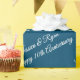 Personalize names, anniversary year or message in white script text on ocean blue background; perfect for wrapping that special gift. Click “Edit Design” to change colors and type styles.