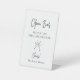Personalize this wedding tabletop sign to let guests know there's an open bar as long as they are on the dance floor! The simple white sign with black text is sure to go with any reception decor.
