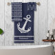 Custom Nautical Anchor Bathroom Ocean Navy Blue Bath Towel Set