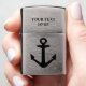 Custom nautical anchor logo Zippo Pocket Lighter. Maritime gift idea for men. Cool Birthday or Father's Day gift idea for sailor dad, fisher, navy guy, father, brother, grandpa, grandfather, uncle, friend, son, co worker, boss, captain, first mate, wedding groom etc. Black or custom color symbol.