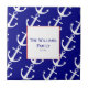 This red, white, and blue paper tile has a white anchor pattern on a blue background. A red border surrounds a white field for your personalized text.