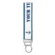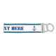Custom nautical boat anchor grosgrain keychain for boat captain, sailor, skipper, fisher, dad, friend, boss etc. Add your own name, boat name or funny quote. Navy blue and white ship anchor design. Also nice as maritime theme wedding party favor for beach destination marriage. Change quantity to get the cheap bulk price. Handy loop for wrist or other attachment.