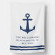 Create a unique custom beach house flag with your Family name, place and year featured on the design that is decorated with nay blue anchor and hand-drawn stripes on white background. You can customize and personalize the design easily using template.