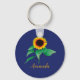 Custom Navy Blue Gold Script Watercolor Sunflower Keychain