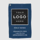 Company branded golf towel features your professional business logo and custom preferred business information - website, location, email, phone, etc. - text that can be personalized. Navy blue and white colors can be changed.
