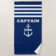 Make a splash with this Custom Navy Captain Beach Towel. Perfect for boat owners and beach lovers, this stylish towel features the bold header 'CAPTAIN' with a personalized name beneath it. Made from high-quality, absorbent materials, this towel is both soft and durable, making it the perfect accessory for any seaside adventure. Customize it with your name for a unique and personal touch. Ideal for gifts or personal use, this beach towel is a must-have for any captain.