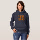 Custom navy football jersey number women's hoodie. Add your own personalized name or team name. Navy blue and orange colors. Cool sports outfit for fans of football, baseball, hockey, basketball, volleyball etc. Trendy clothing for women and girls. Available in other colors. Soft fleece hoodies.
