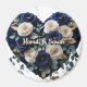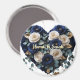 Add a touch of botanical luxury to your kitchen with this elegant round fridge magnet. Featuring a stunning heart arrangement of navy blue and cream roses with gold leaf accents. Personalized with couple names or an initial. A perfect small gift for weddings or new homes.