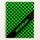 Cool personalized planner print with classic neon green & black checkered pattern and custom name on black background. Can be personalized by adding your name or other text and by changing the font style, font size and font color. Perfect for bullet journaling, scheduling, contact management or for keeping a track of your meetings and birthdays of your friends and family.