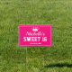 Custom neon pink Sweet 16 sixteen party yard sign with directional arrow pointing in any direction you like. Cute girly design with princess crown and elegant typography. Perfect for girl's 16th Birthday or Quinceanera party.