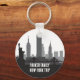 Customize these chic New York city vacation keychains for your family trip to the big apple. This modern keepsake features a great black and white drawing of the Manhattan skyline and the Statue of Liberty above your personalized text. Cool skyscrapers souvenir for your trip.