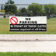 An outdoor black white and red sign banner that can be customized. You can use it for warnings like: No Parking / in front of gate, No Parking / in front of garage, No Trespassing / private property etc. Just add your text.