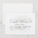 Custom Note Card is shown in the white linen card paper with a lovely botanical blue floral watercolor print.