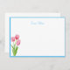 Custom Note Card shown in white with a cute spring tulips print and with a blue border trim.