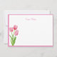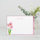 Custom Note Card shown in white with a cute spring tulips print and with a pink border trim.