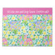 A very pretty, customizable Notepad or Jotter, with a pattern of pink, yellow and blue primroses, from a handpainted watercolour design by Judy Adamson. The notepad shown has a plain band in Pretty Pink to customize but other colors are available in my store.
