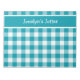 A customizable Notepad or Jotter with a teal and white check gingham pattern. Suitably adjusted for size, this design will also fit the smaller notepad.