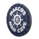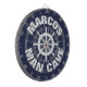 Custom novelty design nautical man cave dartboard. Funny maritime theme dart board design with personalized name and old ship wheel logo. Cool wall decor game for real men's man cave, cabin, fish restaurant, bar, pub, dorm room, bedroom, kitchen, diner, cafe, office, shop, store, boat, ship, deck, graden, wedding party, business, company etc. Personalizable with family name or humorous quote. Awesome Birthday gift idea for friends, family, sailor, boat captain, skipper, fisher, kids, dad, uncle, grandpa, brother, husband etc. Target with bullseye. Navy blue and white colors.