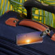 A beautiful and peaceful ocean sunset painting with a lone seagull in flight graces this one of a kind luggage tag. The flying seagull is duplicated on the back, featuring your name and phone number.