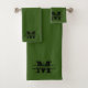 Custom Olive Green Fancy Monogram Bath Towel Set
