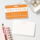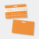 This identification badge for a volunteer features a solid orange background. The title "Volunteer" is printed over a white banner in orange text so that the title is easily visible. You can personalize the ID badge to include your own business or organization name or other custom text.