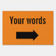 Custom Arrow Sign. Customize words and orange background color. Rotate and size the arrow.