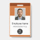 Custom Orange Modern Photo Employee Name Barcode Badge