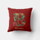Custom Ornate Monogram B Christmas Red Gold Throw Pillow