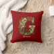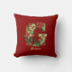 Custom Ornate Monogram G Christmas Red Gold Throw Pillow